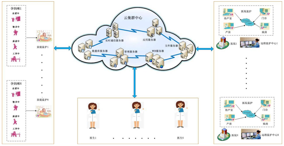 系統(tǒng)由遠(yuǎn)程監(jiān)護(hù)工作站一套、遠(yuǎn)程監(jiān)護(hù)終端設(shè)備MD1000C型胎兒監(jiān)護(hù)儀若干臺(tái)、樂(lè)福孕媽APP、下級(jí)醫(yī)院胎兒監(jiān)護(hù)設(shè)備MD9801型胎兒監(jiān)護(hù)儀組成??梢詫?shí)現(xiàn)上下級(jí)醫(yī)院醫(yī)聯(lián)體遠(yuǎn)程監(jiān)護(hù)遠(yuǎn)程會(huì)診以及遠(yuǎn)程家庭胎兒監(jiān)護(hù)。